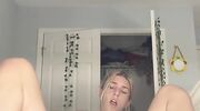 Hot blonde Ambie Bambii gets a messy facial on a hotel balcony